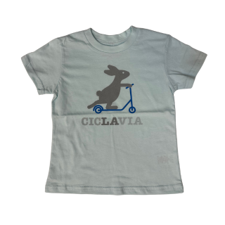 Our kids t-shirts are designed for smiles! This one features Bunny scooting along enjoying the city streets.
